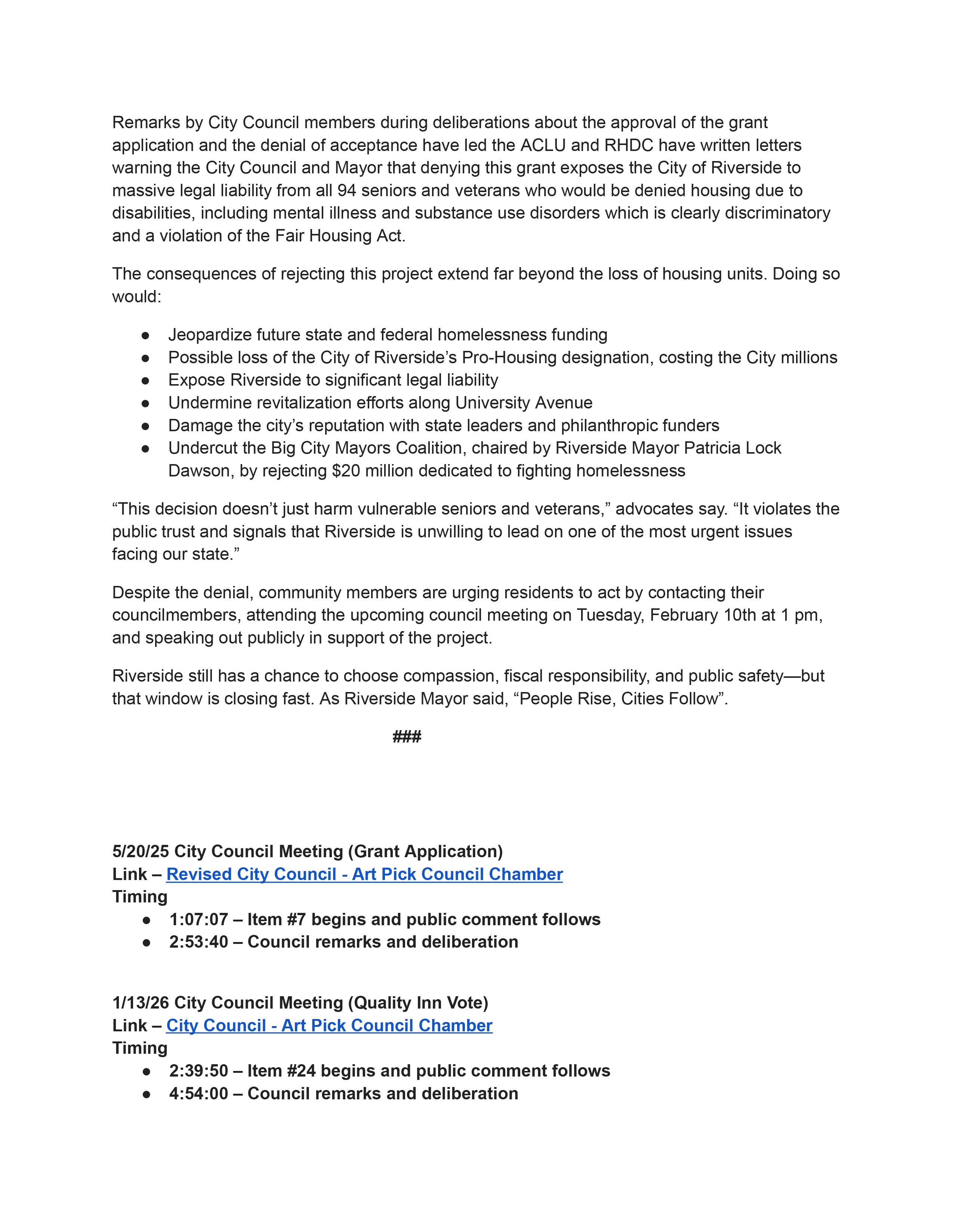 Riverside should ACCEPT the $20 million to aid homelessness.